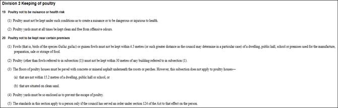 The Local Government (General) Regulation 2021 (legislation) references two things as part of Division 2: poultry and fowl.